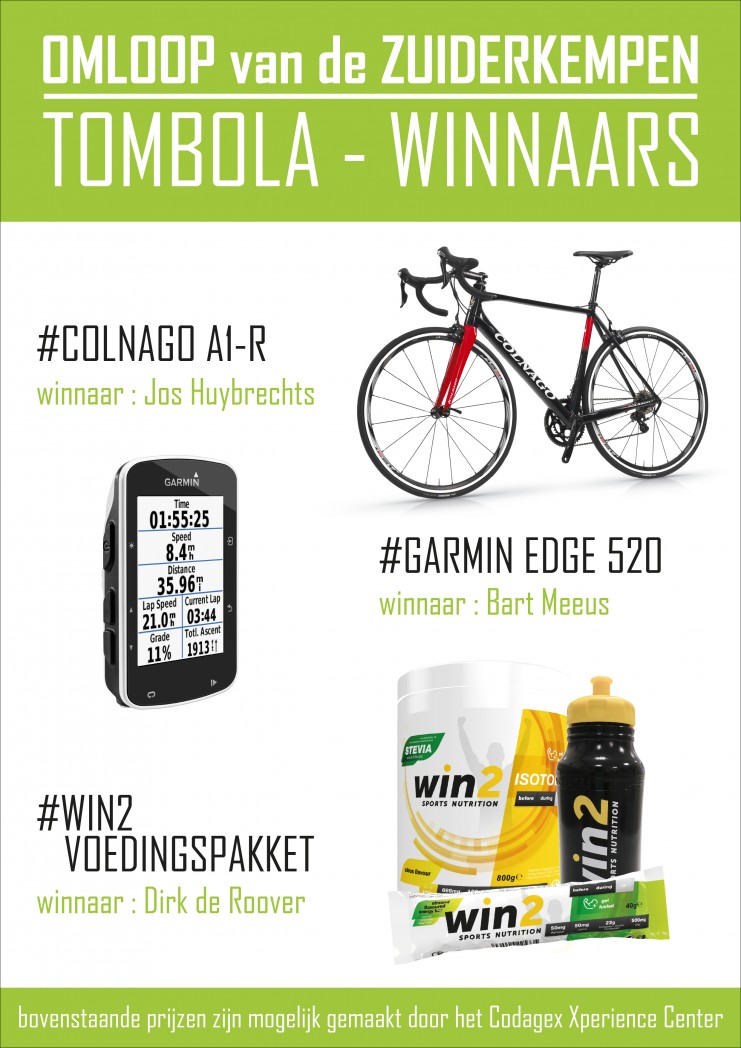 Hieronder de winnaars van de Tombola van de Omloop van de Zuiderkempen.